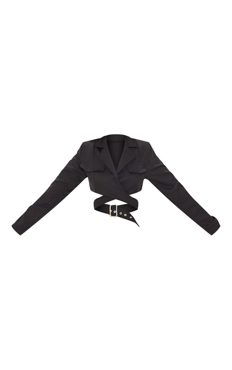 Nail the jeans and a nice top brief with this dreamy black belt detail wrap over cropped blazer, it is perfect for your next night with the dolls and beyond. With a black material a belt detail and a wrap over design, you’re sure to be channelling all the fierce vibes. The cropped length makes this the perfect piece to show off your shape. Pair with your fave blue jeans, clear slip-on heels and a shoulder bag for a look that brings all the attitude.