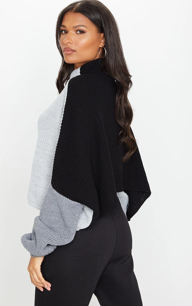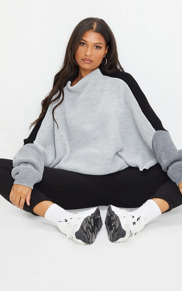 Look the ultimate doll in this show-stopping jumper. Featuring a black knitted material with colour block panelling and a crew neck design in an oversized style, team it with denim jeans and fresh kicks for an effortless day look.