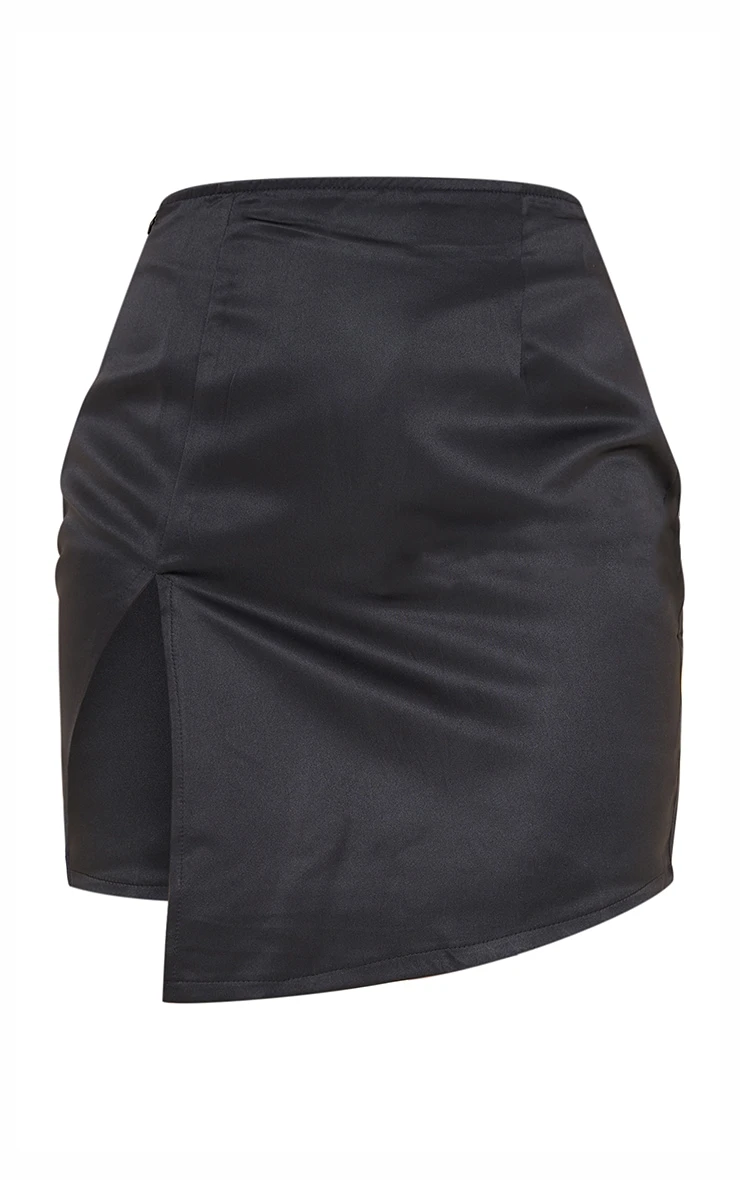 This skirt can be dressed up or down for any occasion. Featuring a black satin material with a tailored design, split front detailing and a mini length. Just add a t-shirt and chunky boots for a rock chick vibe.