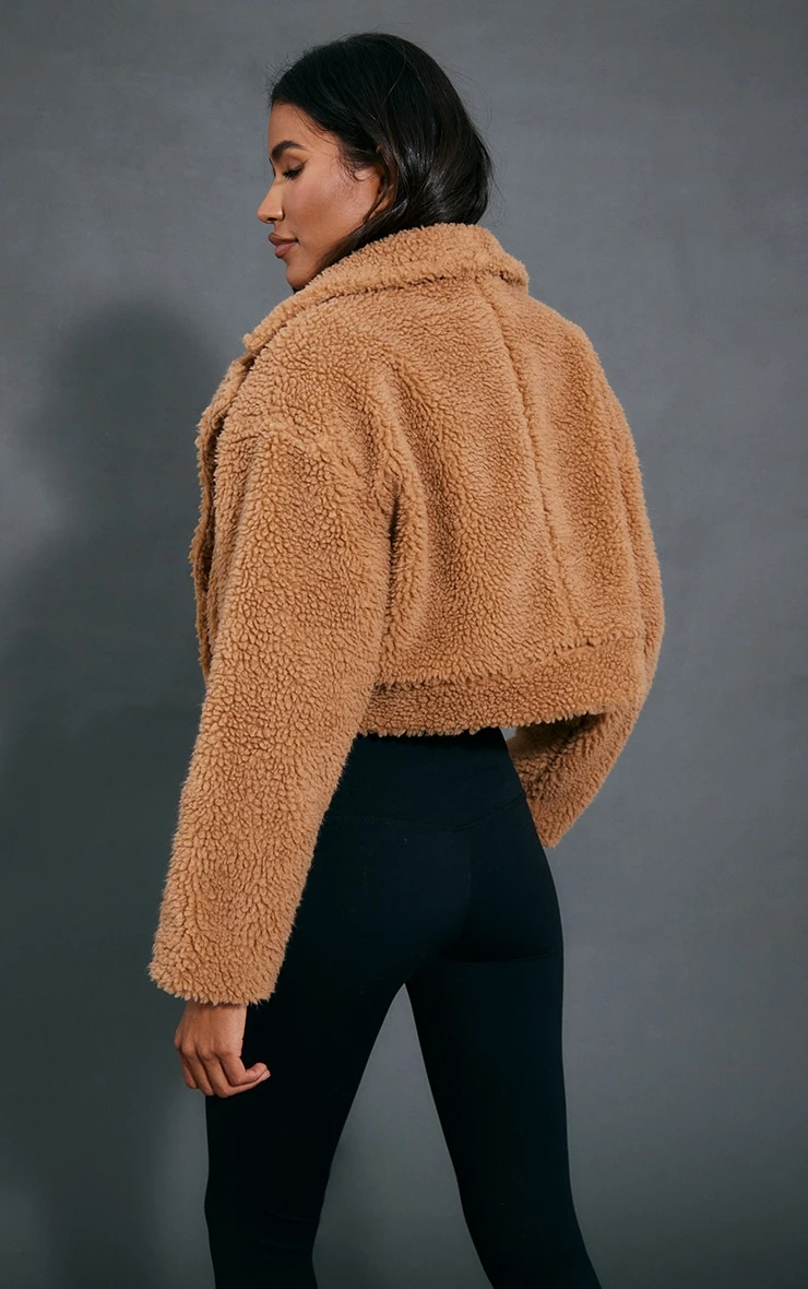 Upgrade your outfit of the day with this biker jacket doll. Featuring a camel borg material with zip details and a cropped length. Pair with a relaxed fit for a vibe that won’t go unnoticed on your off-duty days.