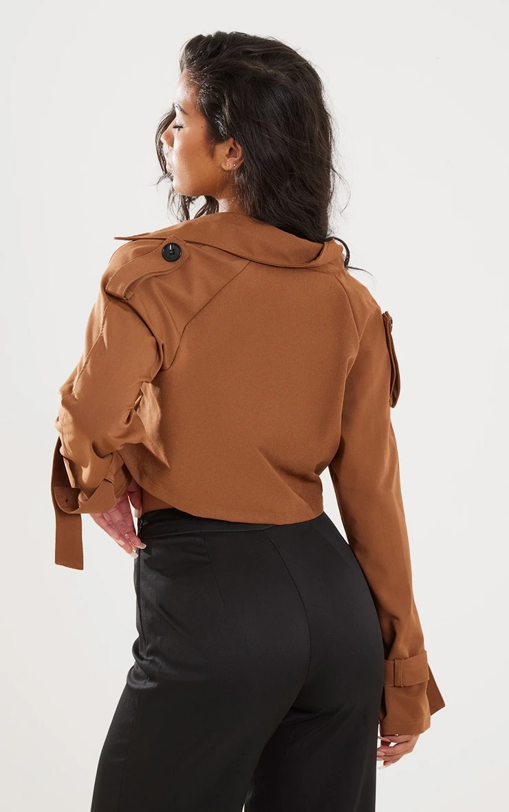 Bring all the chic vibes to your weekend plans with this camel-cropped woven trench coat. Made from a camel woven material with button details and a cropped length, we’re obsessed. This trench coat is so on trend for the new season and everyone is sure to love it. For a flawless finish, add tailored wide-leg pants, clear heels and a fiercely feminine vibe.
