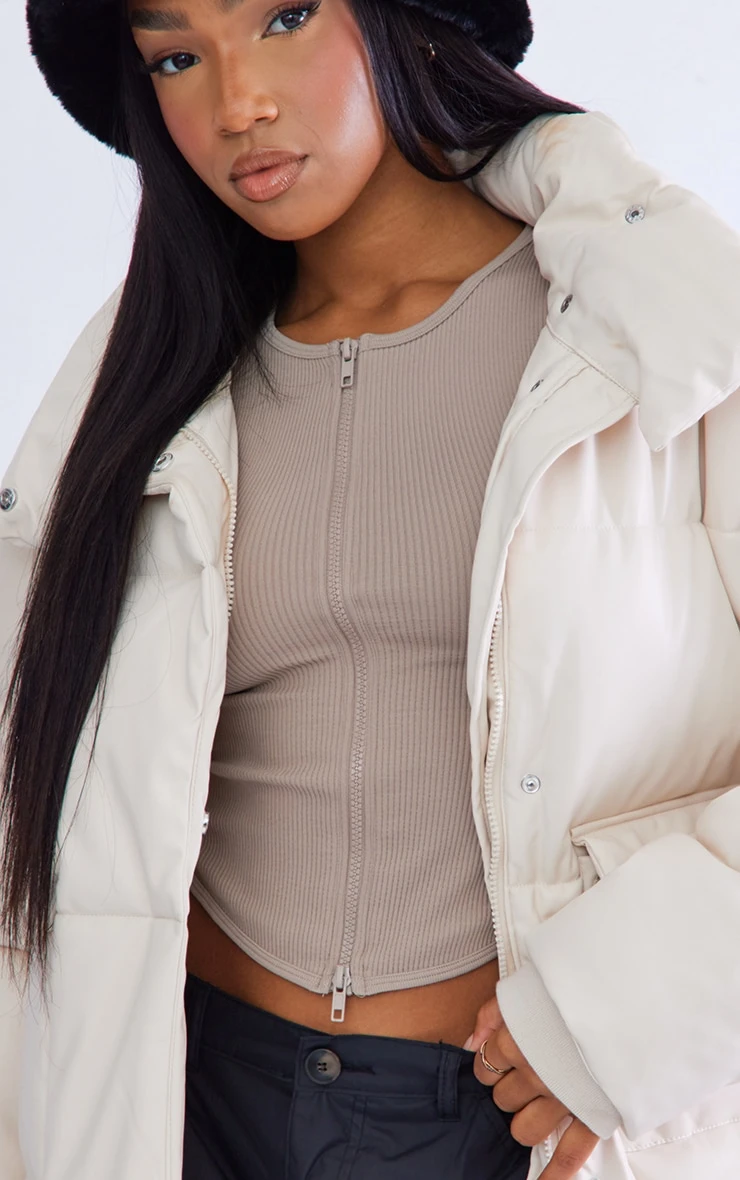 This puffer jacket is an essential for the new season and beyond. Featuring a cream faux leather material with pockets and an oversized fit, we are in love. Layer over your outfit of the day for that perfect on-the-go look that will make heads turn.