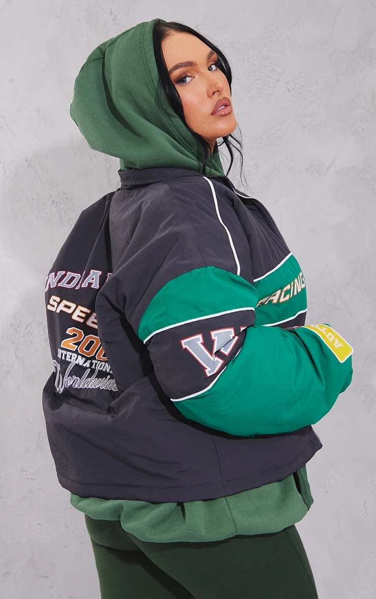 Hit refresh on your new season wardrobe with this jacket. Featuring a green material with a slogan print and a zip fastening, what’s not to love? Team with a green hoodie, matching hue leggings and chunky boots to earn all the style points.