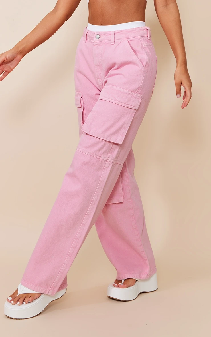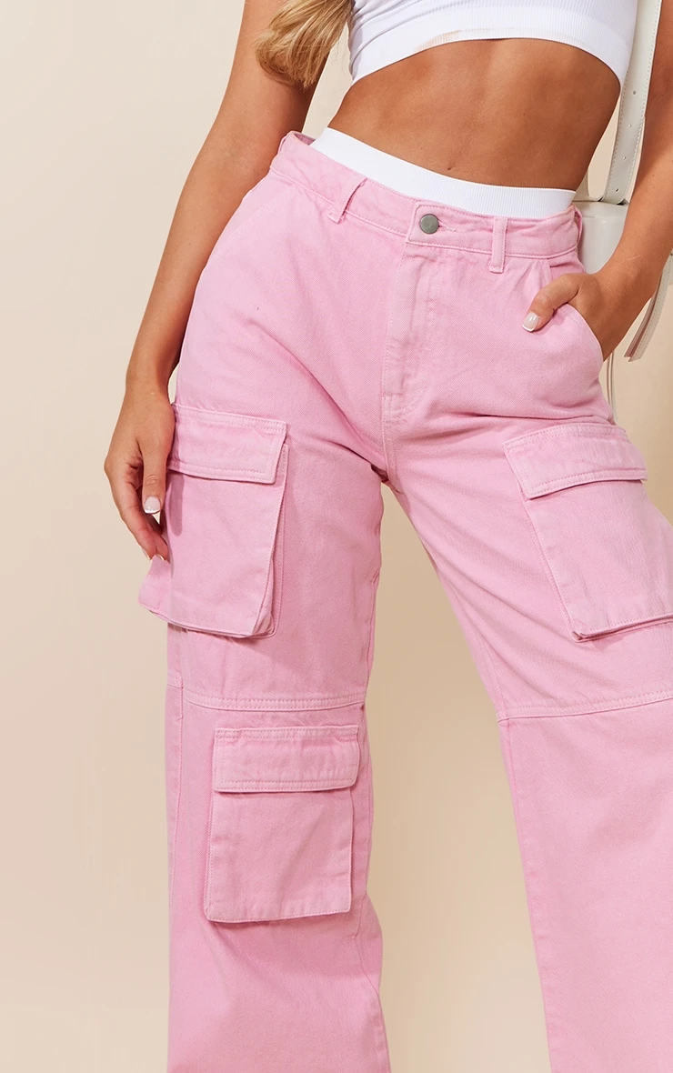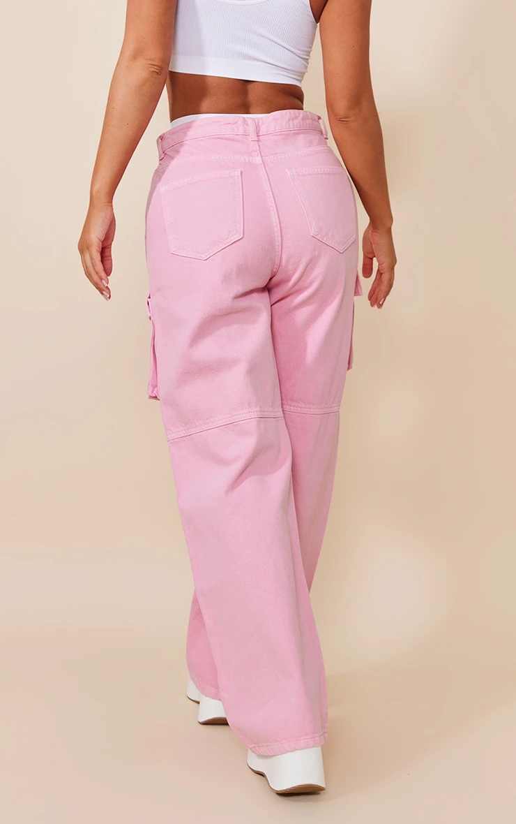 Add a pop of pink to your outfit of the day with these light pink baggy wide leg cargo pocket jeans, you’re sure to take your new season wardrobe to the next level whatever the occasion. They’re made with a light pink material with a wide leg fit and cargo pockets, how could you not be in love? Team with a basic crop top, platform sandals and your fave accessories for the ultimate fresh finish.