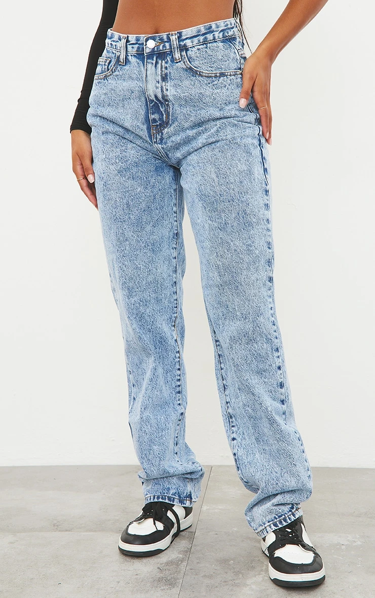 Amp up your outfit of the day with these jeans. Featuring a mid blue denim material with a flattering high waistline and a straight leg fit. Style with a crop top and fresh kicks for a simple but chic combo.