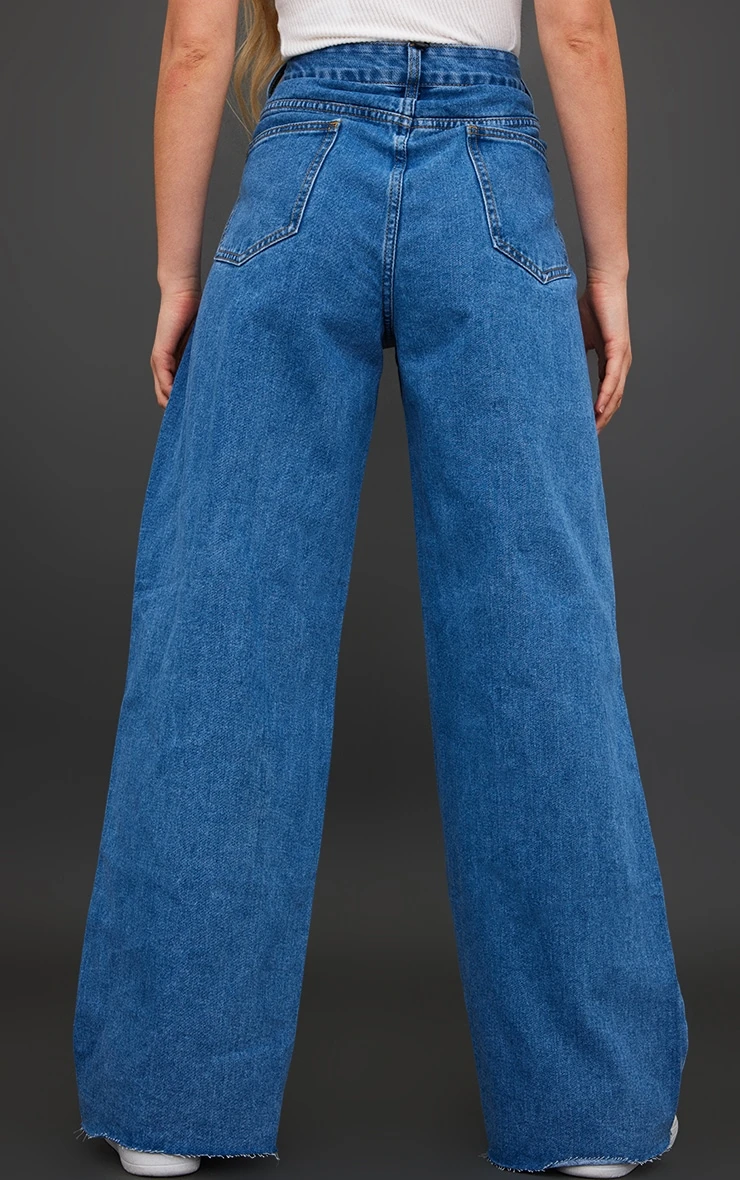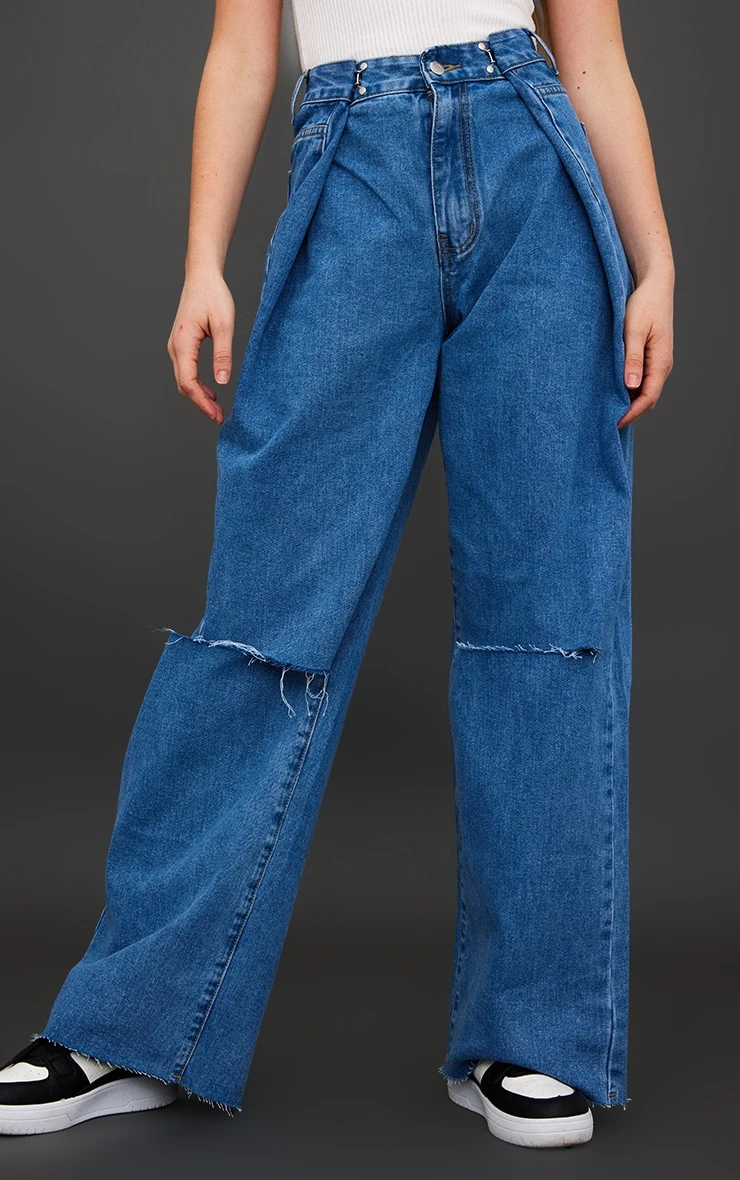 Never miss a beat with this staple mid blue wash adjustable waistband wide leg jeans this season. Made using a mid blue denim material with a relaxed fit that’s perfect for all occasions, we know you won’t be able to resist. These women jeans are a seriously hot topic. Just team with a cropped tee, sneakers, gold accessories and a shoulder bag for the perfect ‘fit that won’t go unnoticed.