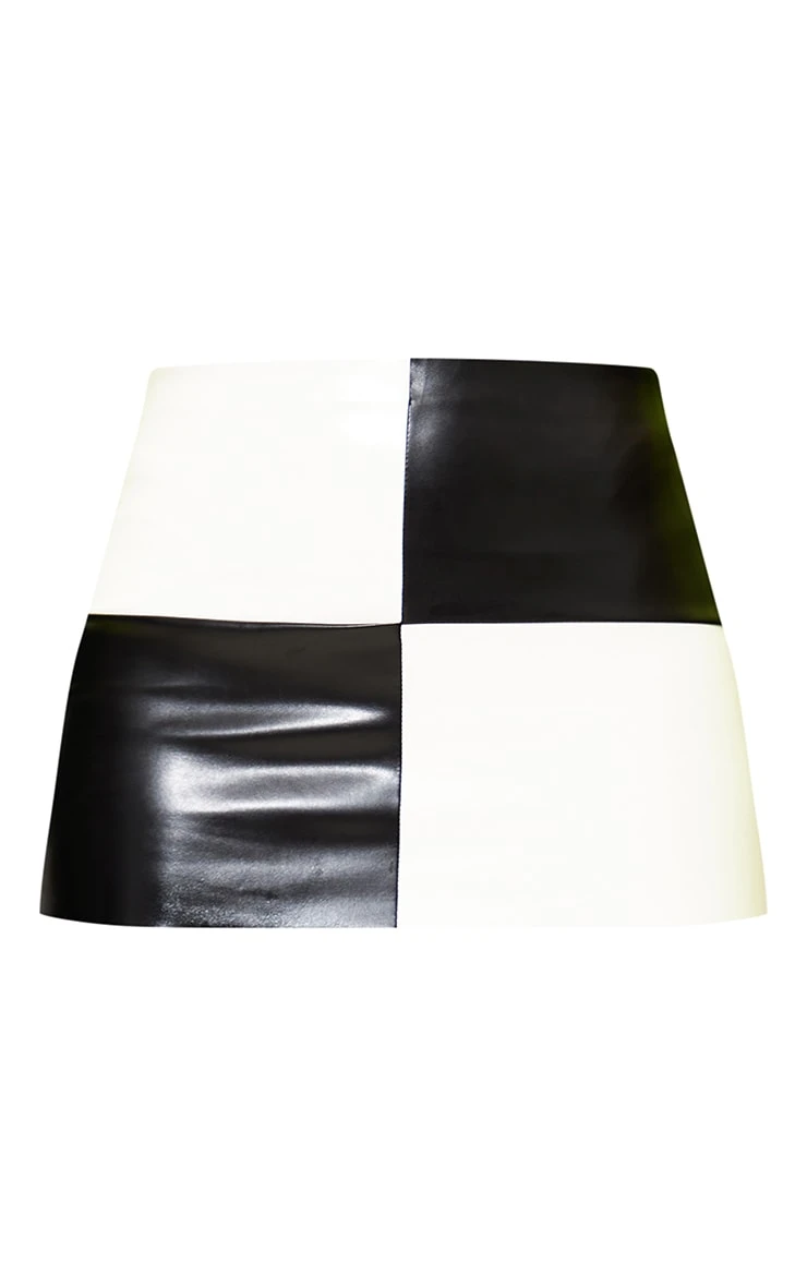 Inject drama into your weekend wardrobe with this skirt doll. Featuring a monochrome checkerboard PU material with a mini length, what’s not to love? Style with knee-high heel boots, a lime shirt and your show-stopping accessories.