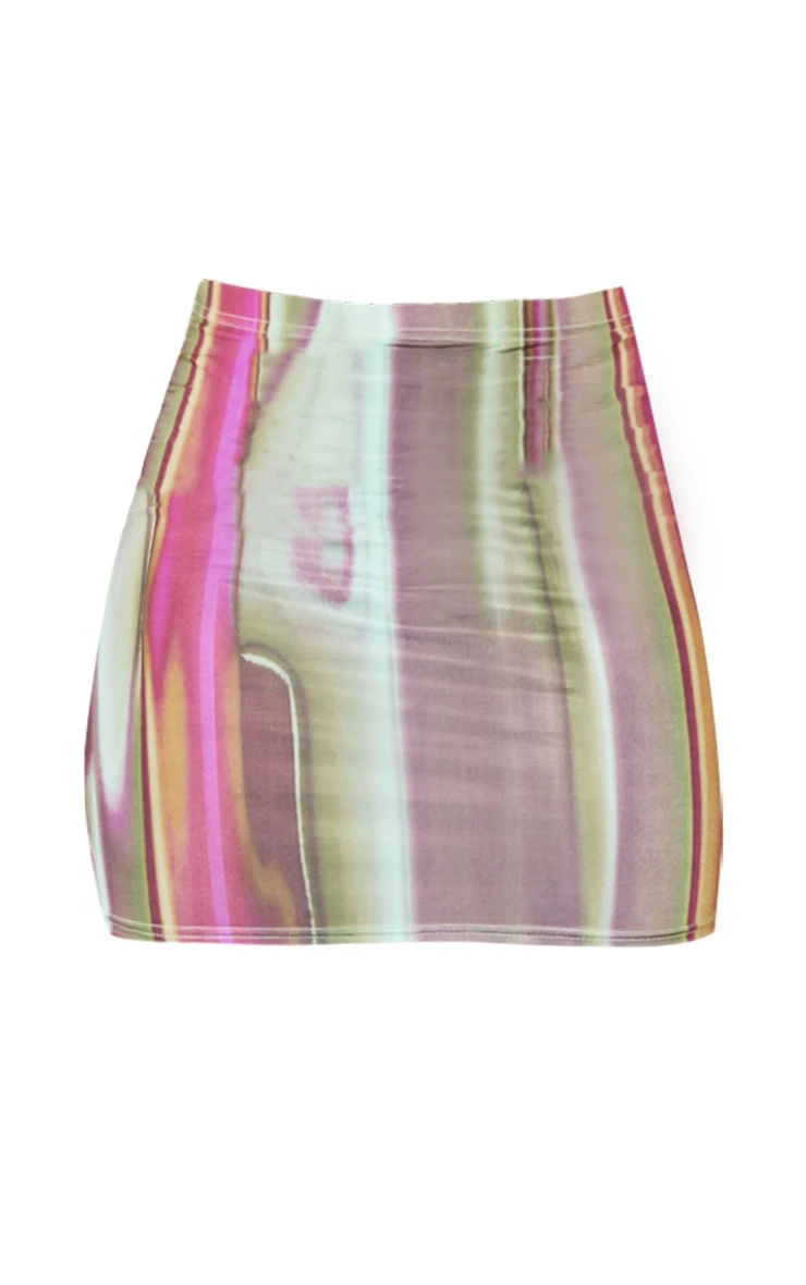 Show off your shape in this skirt doll. Featuring a multi-abstract print slinky material with a mini fit, how dreamy? Style with the matching top and your fave heels to steal the stares.