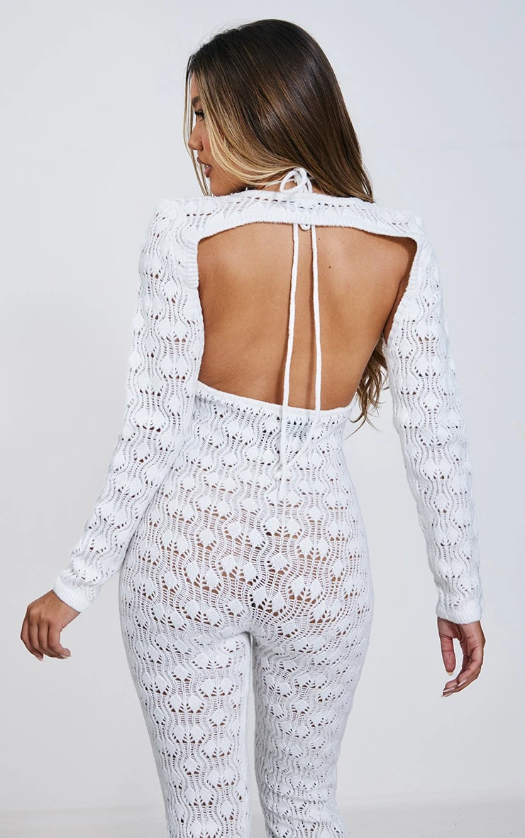 Finish off your weekend fit in style with these sleeves. Featuring an off white knit material with an open design, how could you possibly resist? Team with the matching jumpsuit and your highest heels for a fierce finish.