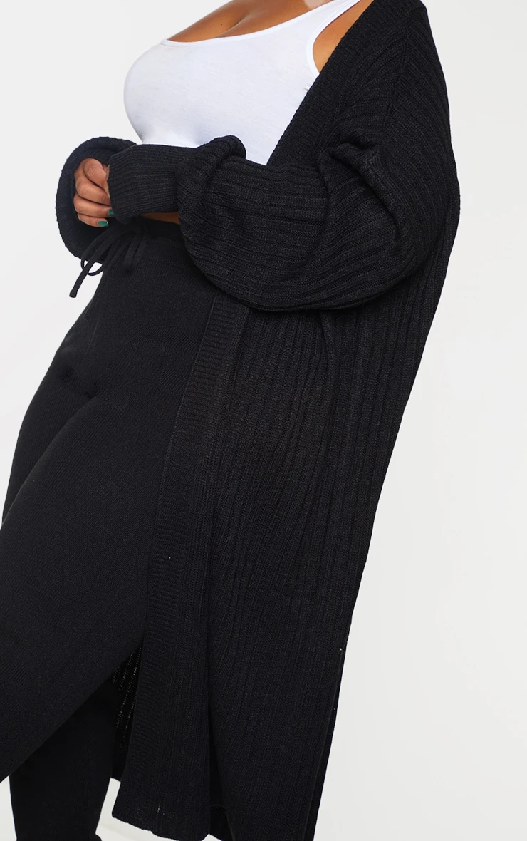 Get maxing out your off-duty wardrobe with this staple cardigan doll. Featuring a black ribbed knit material with long sleeves and a midi length, what’s not to love? Wear this with comfy bottoms and a crop top for an effortlessly on-point combo.