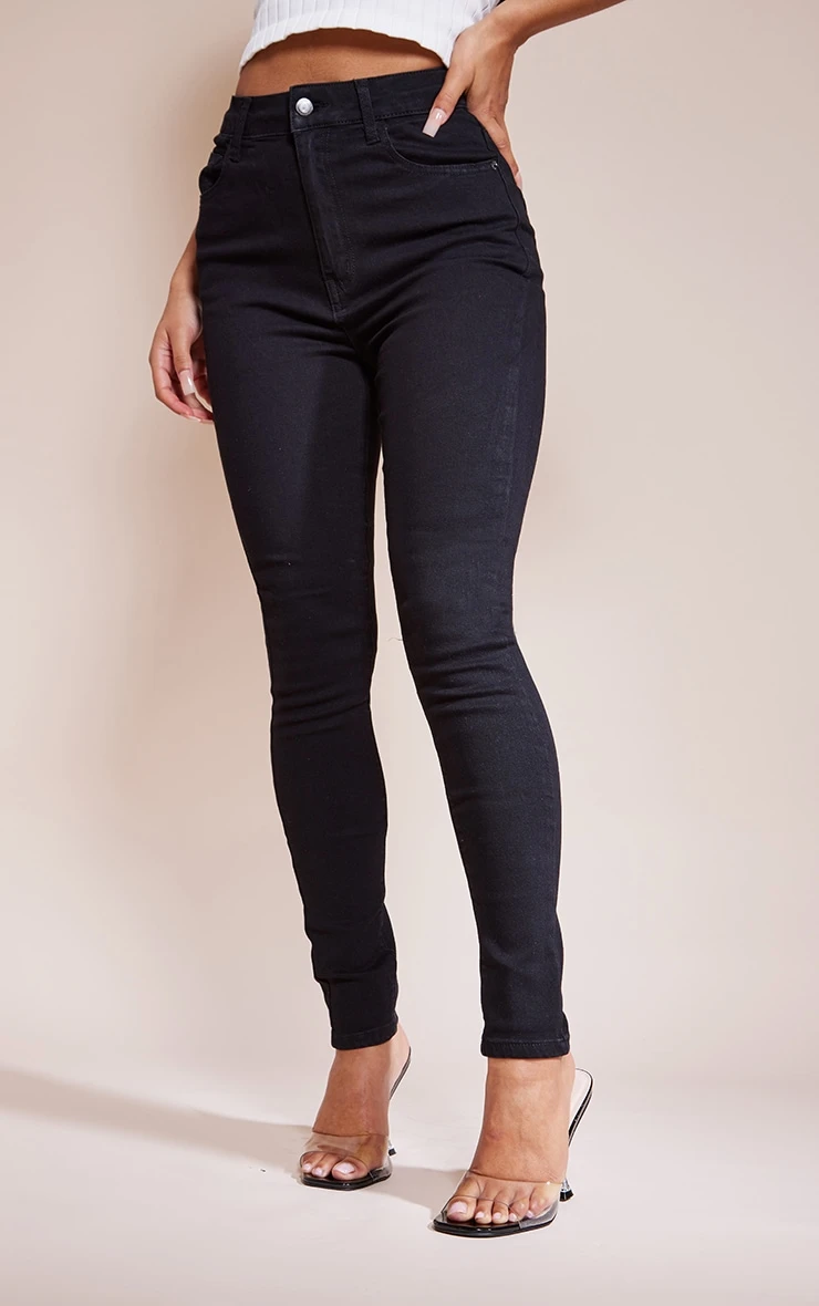 These jeans are sure to flaunt your figure. Featuring a black denim material with a skinny fit and a classic 5 pocket design. Team these with a denim top and barely-there heels for a double denim look we are crushing on.
