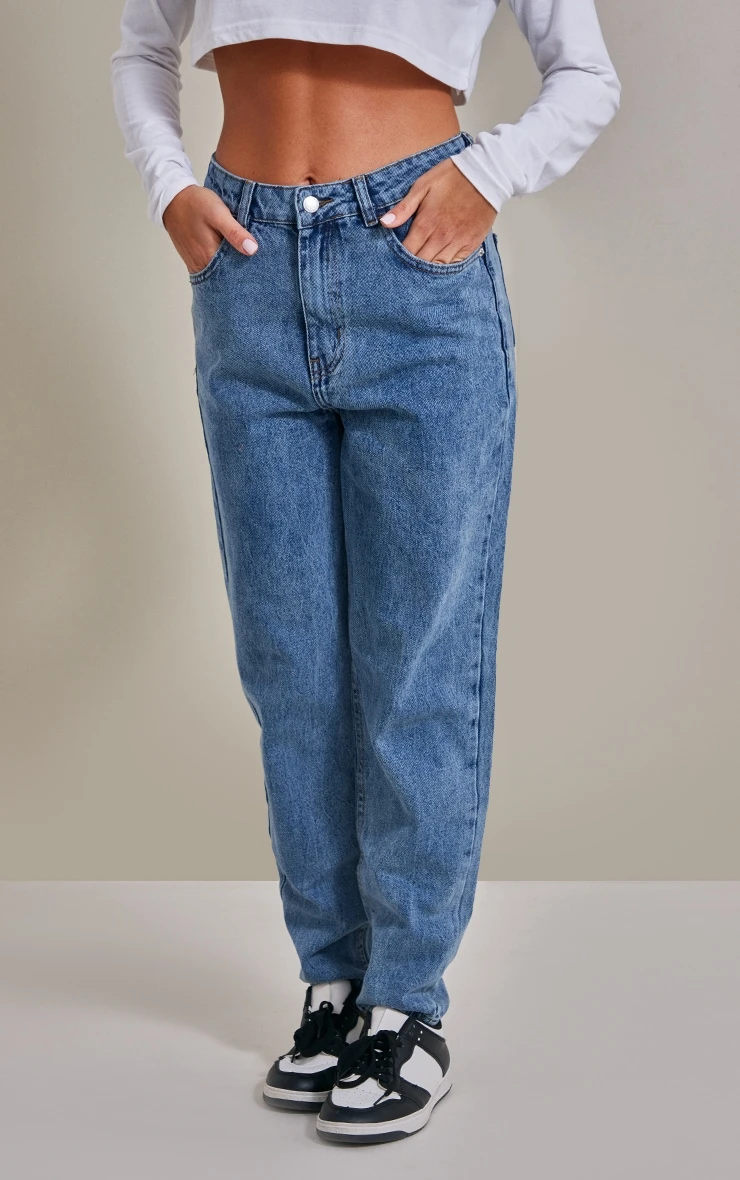 Give your new season wardrobe an effortlessly chic upgrade with these jeans. Featuring a vintage material in a mom style and a relaxed fit. Pair with an oversized blazer and box fresh kicks for the perfect off-duty fit.
