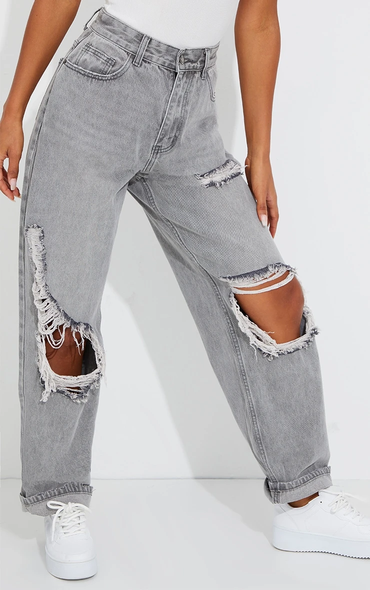 Add an edge to your look with these must-have jeans. Featuring a washed grey material with an open knee design and a boyfriend fit. Style this with a simple tee and chunky kicks to complete the look.