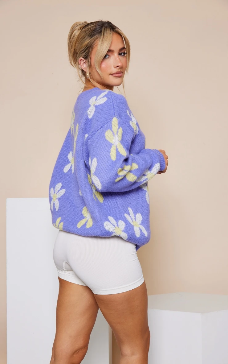 Make a statement this season with the purple flower brushed knit oversized jumper. We know this piece will take your collection to another level. Made using a purple knit material with an oversized design and a relaxed fit that is perfect for off-duty styling and beyond, what more could you ask for? You are sure to earn all the likes. Wear with shorts, fresh sneakers and simple accessories for a vibe that won’t go unnoticed.
