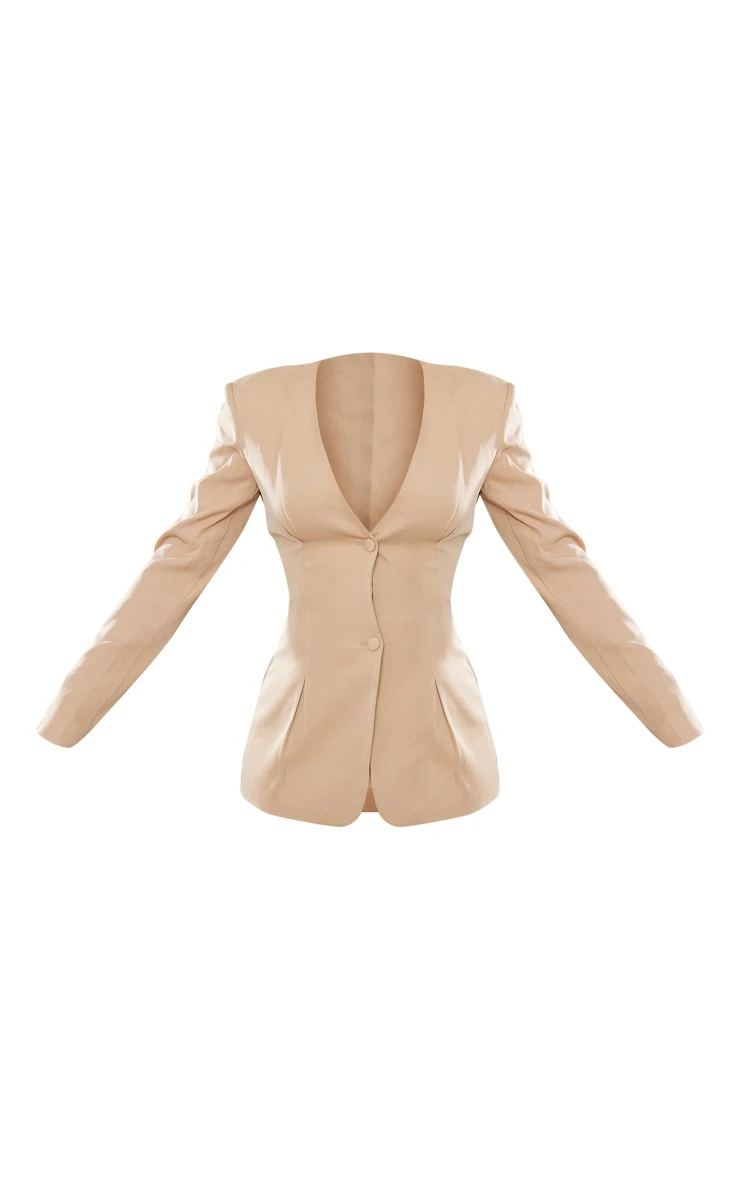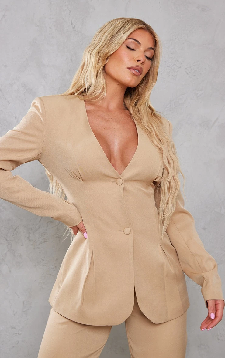 This stone woven open back button detail cinched blazer is the answer to all your what-to-wear dilemmas doll. With a stone woven material bringing all the luxe vibes, an open-back design, and button detailing, you won’t be able to resist. Style effortlessly with the matching pants, clear heels and gold accessories for a seriously dreamy finish.