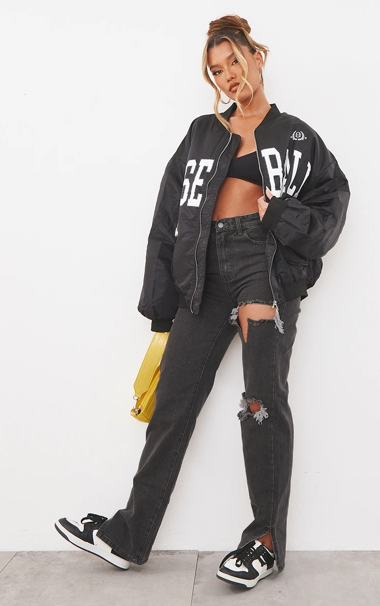 Update your everyday wardrobe with these jeans doll. Featuring a washed grey denim with distressed detailing and split hems, what’s not to love? We love these teamed with a sweater and fresh chunky kicks to complete the look.