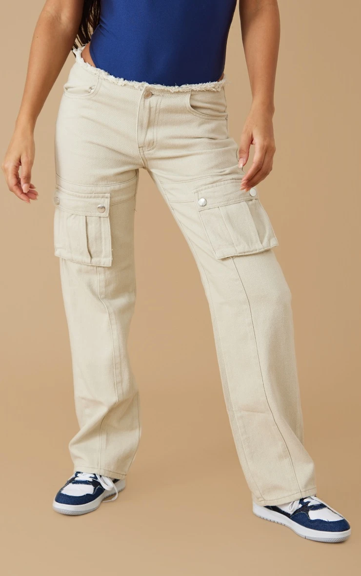 Take on the new season in style with these washed stone frayed waistband cargo pocket jeans. Tehy are perfect for your denim collection and beyond. Made using a washed stone hue denim material with a pocket detail and a flattering fit, what more could you ask for? Wear with a cropped tee, high heels, gold hue accessories and a chic shoulder bag for the ultimate weekend ‘fit that is sure to steal all the stares.